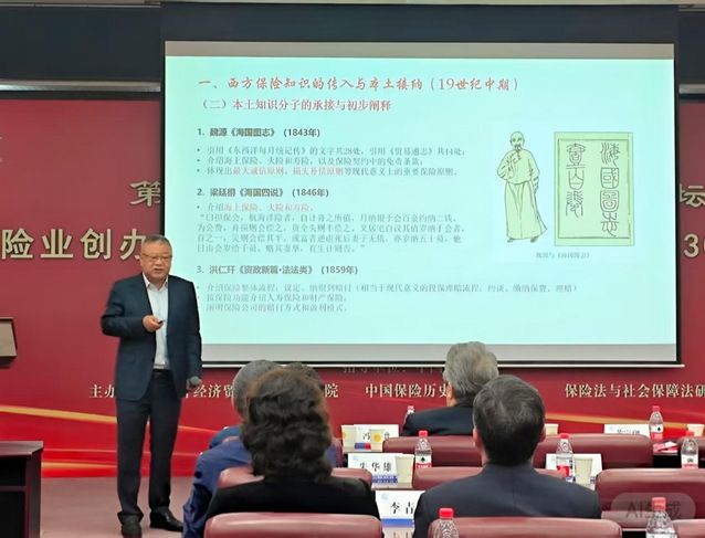 朱教授在演讲中阐释,中国近代保险思想历经西方保险知识传入、本土知识分子承接阐释,至民族保险思想萌发与理论体系深化的发展脉络。19世纪中叶,传教士引介保险理念,本土知识分子积极吸收并初步阐释;19世纪后期,外商保险公司长期垄断背景下,民族保险业在“与外洋争利”驱动中逐步崛起;至20世纪20至30年代,保险理论体系日臻完善,精算思想的传播为其奠定科学根基。总结历史经验时,朱教授强调保险思想与实践的协同演进是近代民族保险业发展的核心路径。他指出,在“与外洋争利”的历史语境下,民族保险业已逐步超越传统“保民安境”功能。这一基于经济思想史的深度剖析,为与会者提供了宝贵的历史镜鉴。