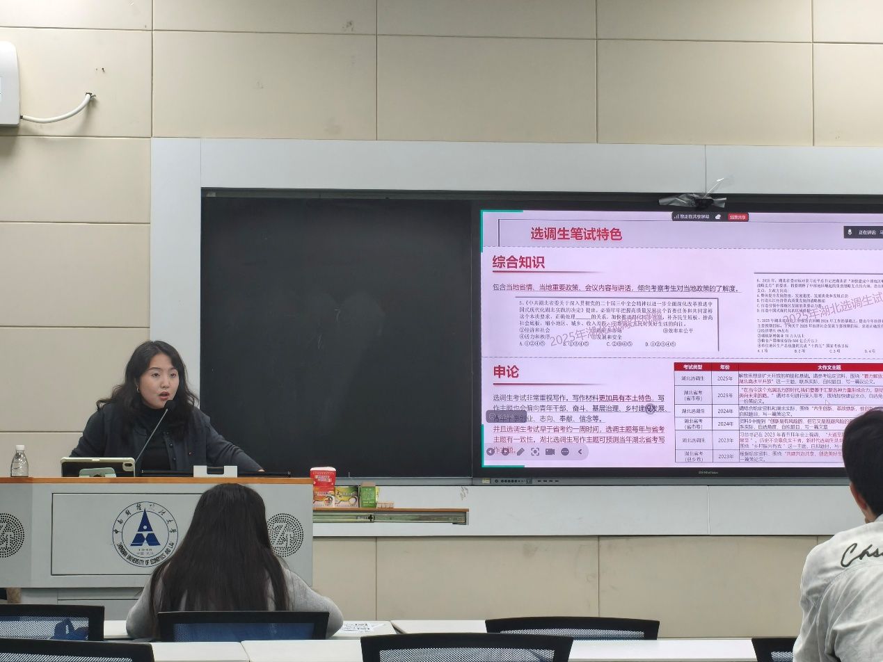 在互动环节,同学们就备考困惑踊跃提问,王老师一一给予细致解答,现场气氛热烈有序。同学们纷纷表示,通过此次讲座,大家不仅对选调生考试有了更清晰的认识,也增强了备考信心与方向感。