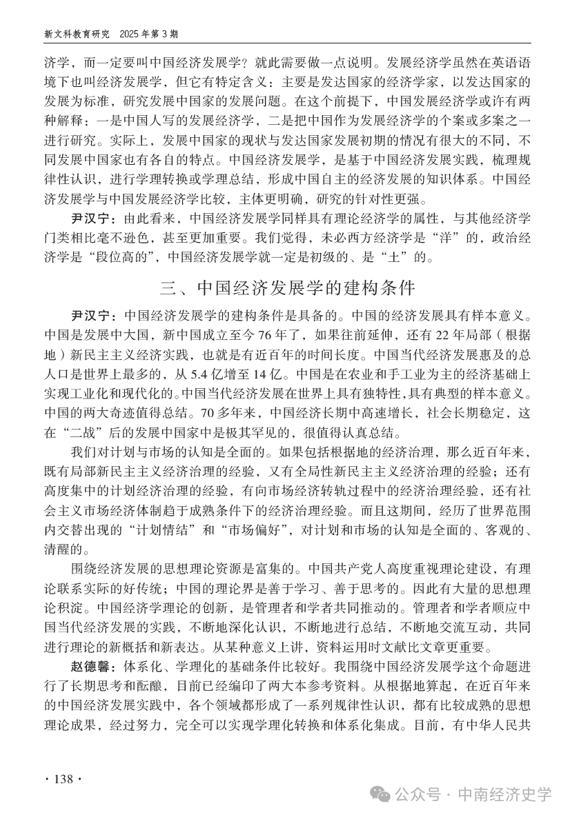赵德馨,尹汉宁:创立中国经济发展学正当其时