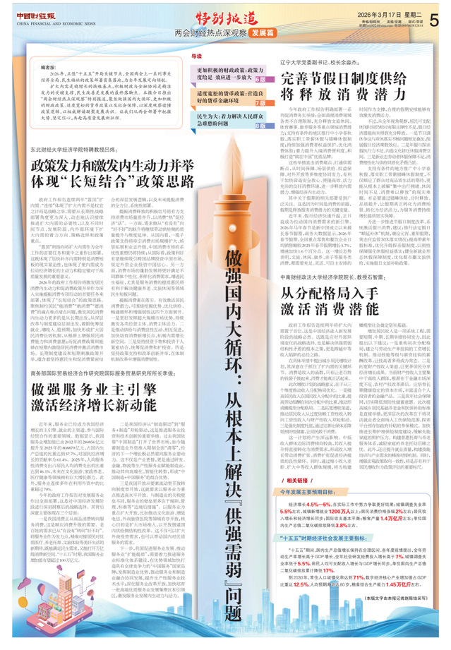在石智雷教授看来,2026年两会提出的一系列促消费举措,直击消费堵点、打通供需断点,从收入保障、场景供给、权益保护等多维度协同发力。而城乡居民增收计划的推进,将从根本上提升居民消费能力,为加快营造安全放心、便捷高效、活力充沛的消费环境提供核心支撑,进一步释放内需潜力、增强经济内生动力,为做强国内大循环、推动经济高质量发展注入持久动能。