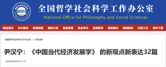 此次系列文章在全国哲学社会科学工作办公室官网刊发,既是对尹汉宁教授学术研究的高度认可,也充分展现了我院在哲学社会科学领域的研究实力与学术担当。学院将以此为契机,持续鼓励和支持广大科研人员扎根中国实践、深耕理论创新,不断推出更多高质量研究成果,为加快构建中国特色哲学社会科学学科体系、学术体系、话语体系贡献智慧与力量。